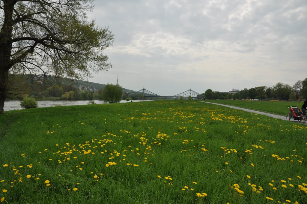 Wir wanderten an dem Tag am Elbufer entlang zum Blauen Wunder, fuhren mit der Standseilbahn hoch zum Weißen Hirsch und wieder runter und wanderten dann noch etwas weiter an der Elbe entlang Richtung Fernsehturm.
